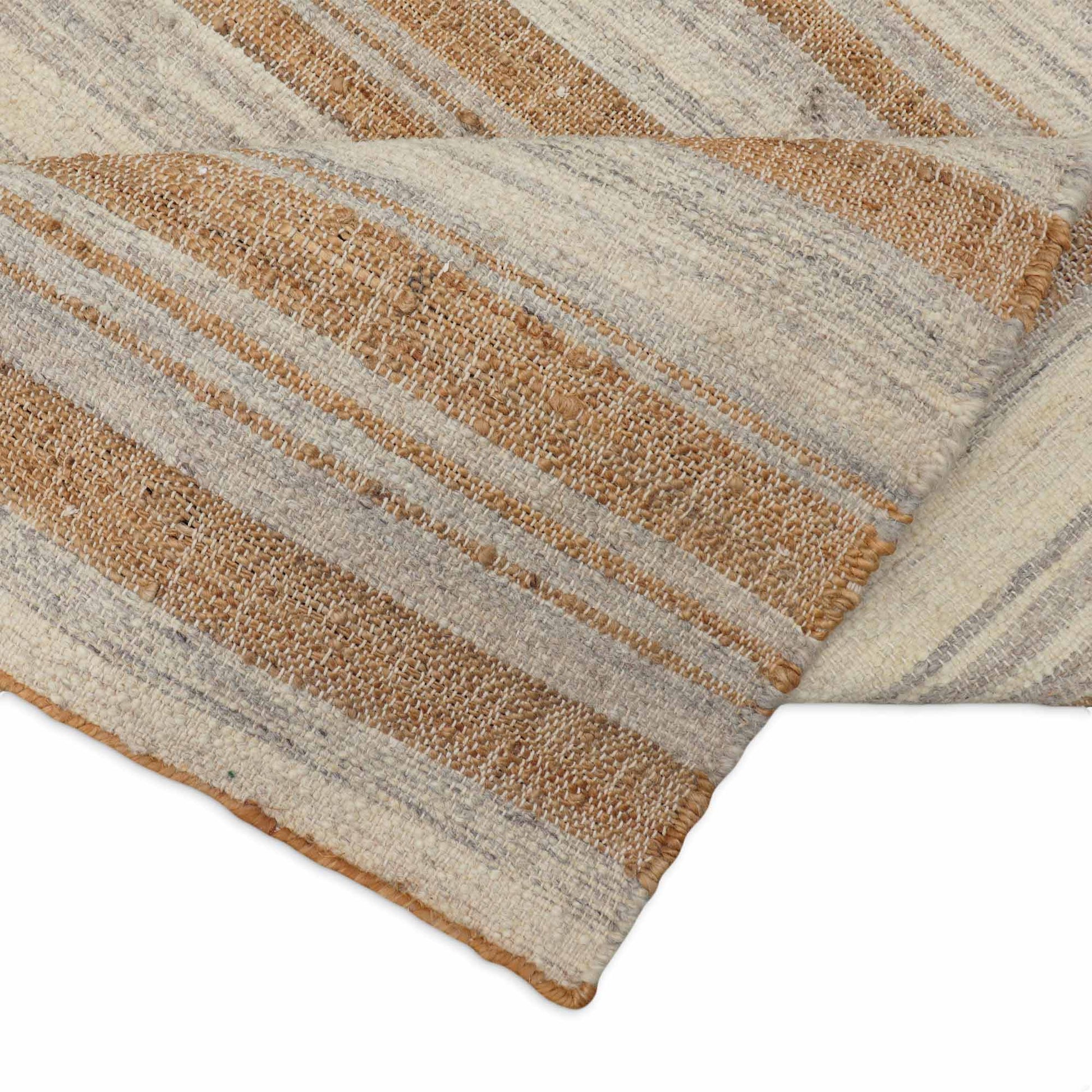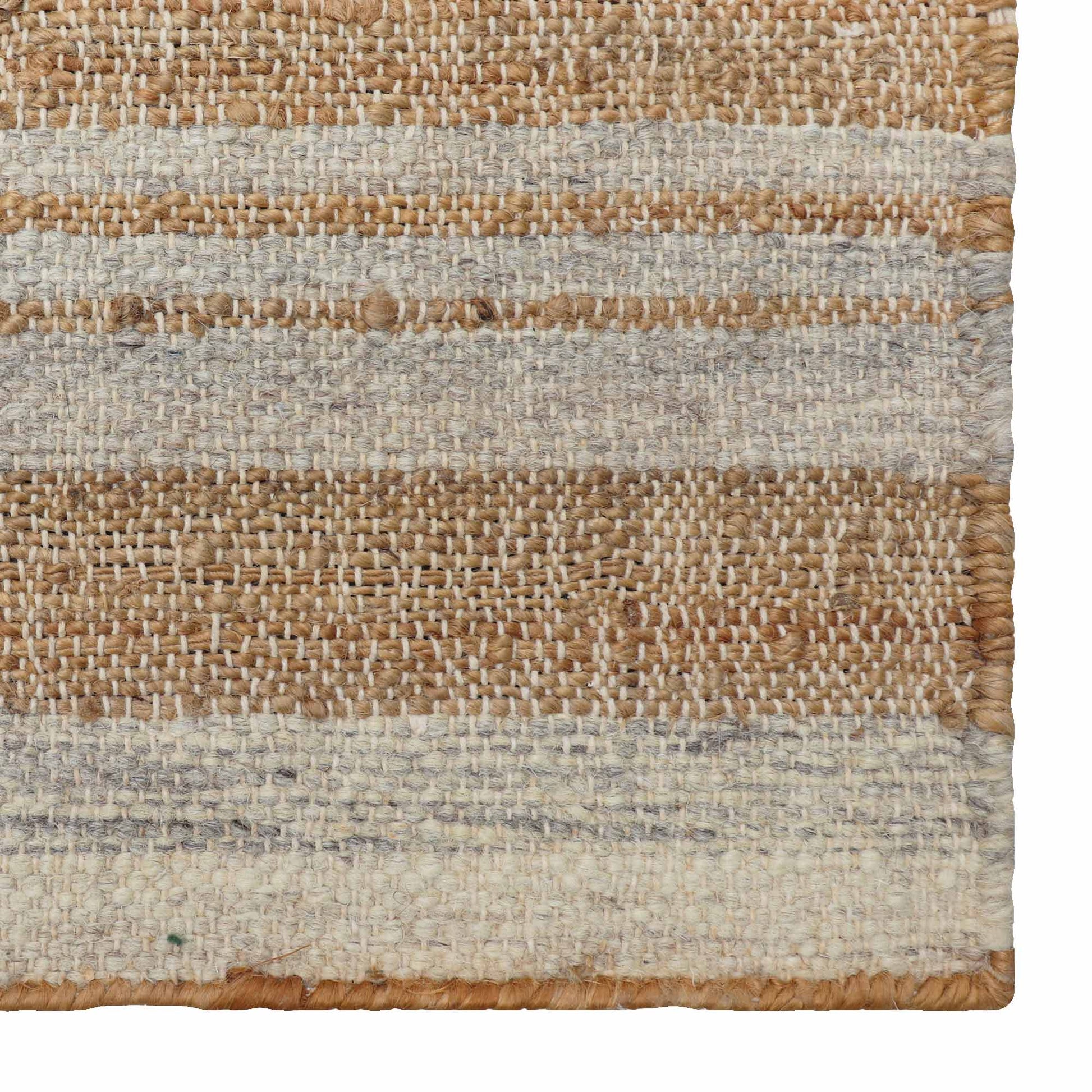 - The design represents a balance between luxury and environmental responsibility with its combination of fine-quality natural jute fibers and fine-quality wool. The handmade flat-weave rugs are incredibly durable, making them suitable for everyday use while offering a level of comfort that makes you forget that you are standing on a rug.