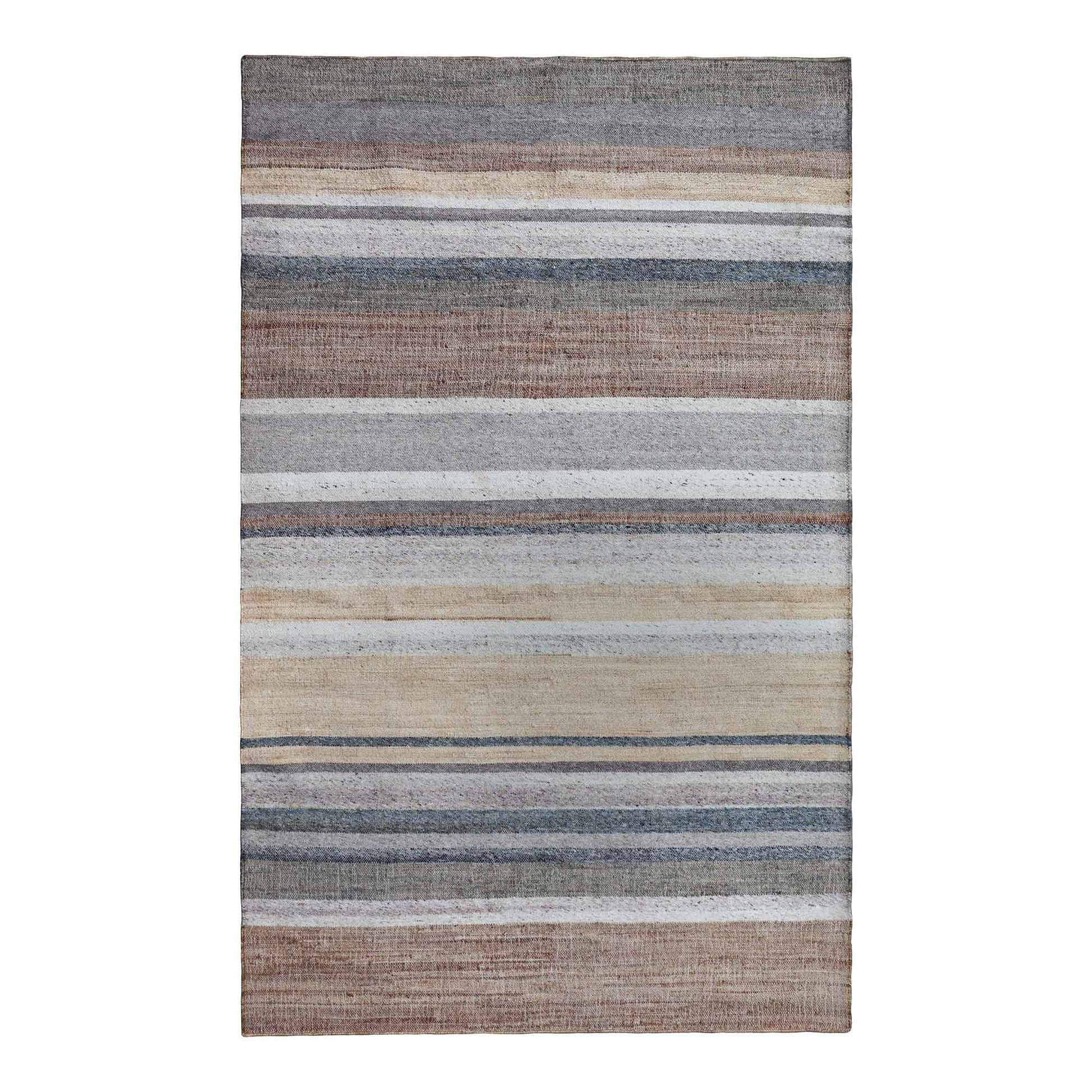- With the Vani Stripe Flat Weave Rug, you can bring elegance and warmth to your home. This lovely handmade blend of wool and jute has an effortlessly stylish appearance and incorporates a refined stripe pattern in shades of blue, rust, grey, and off-white, making it a well-balanced color palette that will work equally well within both a minimal and a bold interior design style.